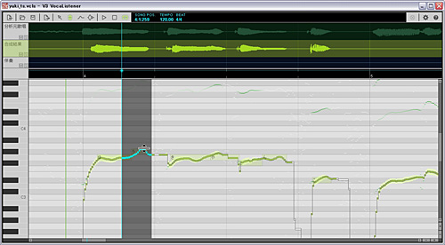 専用のユーザーインターフェースによって、自動調整した歌声合成パラメータの調整が可能。半音単位での移調に対応しているので、手本の歌声が男性の低い声でも、女性の高い声で合成できる。