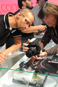パナソニック「LUMIX GH3」の使い勝手を確かめる来場者