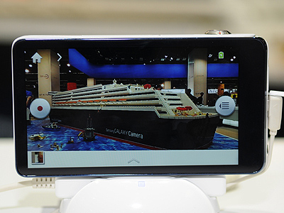 一方、去る8月にドイツ・ベルリンで発表した「ギャラクシーカメラ」の大量展示で強力にアピールしていたのが、韓国のサムスンだ。最新のAndroid 4.1を採用し、4.1型の液晶画面、1600万画素のCMOSイメージセンサ、21倍光学ズームなどをもつ。あえて同社のスマートフォンのブランドを冠した「ギャラクシーカメラ」は、その名の通りカメラとスマートフォンの融合製品だ。Wi-Fiはもちろんのこと、3G/4Gの通信環境に対応、タブレットやスマートフォンなどとリアルタイムで画像の共有ができ、撮影後、PCなしで画像の編集ができる。9月17日に開催したプレス向け発表会では、大半の時間を「映像コミュニケーション時代の幕開け」をもたらす「ギャラクシーカメラ」のプレゼンテーションに割いていた。