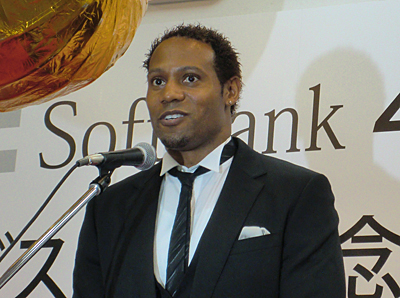 セレモニーでは、まず、同社の宮嶋宏幸社長が挨拶。続いて、ソフトバンクモバイルのテレビCMなどでおなじみの「白戸家」のお兄ちゃん役を務めるダンテ・カーヴァーさんが登場し、「皆さん、これからもソフトバンクのiPhone、よろしくお願いします」とコメントした。