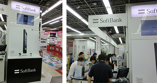 ビックカメラ有楽町店内のソフトバンクモバイルコーナー。