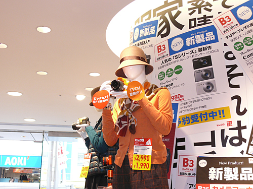 店内にはビックカメラとユニクロの商品をコーディネートした500体のマネキンを設置