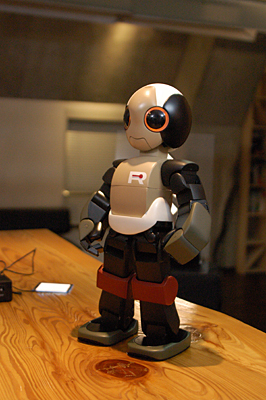 一方、ロボ・ガレージは、走ったりジャンプしたりできる「ロピッド(ROPID)」を始め、数多くの小型ヒューマノイドロボットを開発してきた。高橋社長は「ロボットの目を光らせるために、LED電球を使っている。目をリング状に光らせるために反射板を使うなどして、とても苦労した。有機EL照明なら、発光パネルそのものをリング状にすることができるので、楽ちんになるね」と、ロボット開発での光の重要性に触れた。