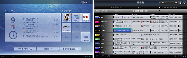 11月上旬には、Android搭載タブレット端末で、地上デジタル、BSデジタル、110°CSデジタル、スカパー!のテレビ番組表を一覧表示する「RZ番組ナビ」を提供。「RZ番組ナビ」は「レグザ Z7/J7シリーズ」とも連携し、タブレット端末で表示した番組表から見たい番組の選局や録画予約ができる。