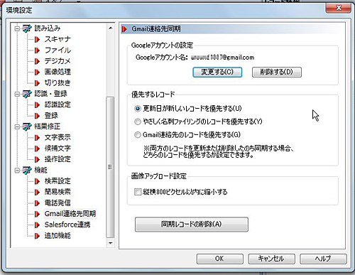 環境設定の「Gmail連絡先同期」にGmailアカウントを登録する
