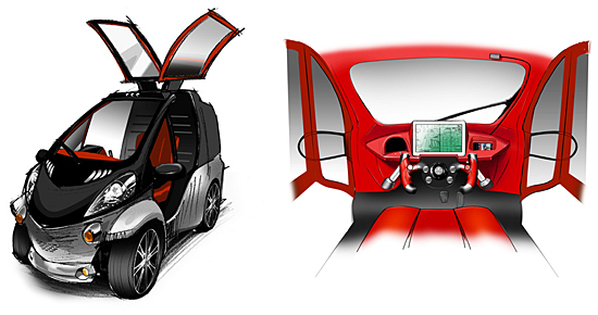 「Smart INSECT」は、ユーザーとの対話型サービスのコンセプトを具現化したもの。名称は、「Information」「Network」「Social」「Electric」「City」「Transporter」の頭文字の組み合わせで、小さなボディでありながら情報ネットワークを駆使し、大きな羽を広げて飛び回る昆虫(insect)のようなイメージを伝えたいという思いを込めた。