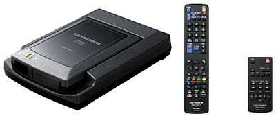 本体ユニットと付属の「カー用クレイドル」を接続して、カーナビゲーションやリアモニタなどの車載ディスプレイにつなげば、録画した地上デジタル放送の番組を視聴できる。車内での使用時には、自動的に再生専用画面表示に切り替える。また、自動車のエンジンが停止するなど、再生中に電源が切れた場合でも、再起動後に番組の続きから自動再生するレジューム機能を備える。本体ユニットは、サイズが幅76×高さ20×奥行き116mmで、重さは約130g。