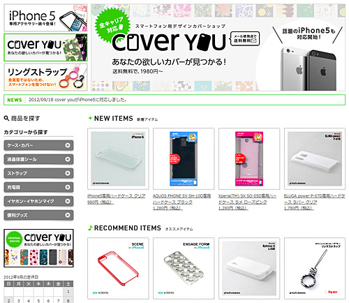 「cover you」を運営するテレホンリースは、家電量販店、PC専門店、ネットショップの実売データをもとに、製品部門別に年間で最も売れたメーカーを表彰する「BCN AWARD 2012」のスマートフォンアクセサリ部門で、No.1を獲得したメーカーだ。