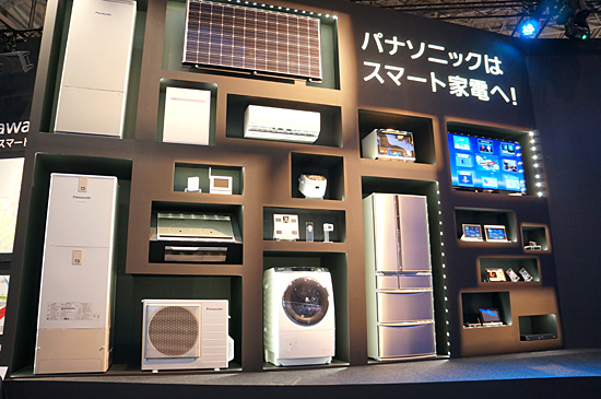 白物家電とスマートフォン、そしてクラウドとの連携をいち早く提案したパナソニックは、「スマート家電」に対応した製品をまとめて展示。これらが連携するサービスと、使い勝手のよさを紹介している。