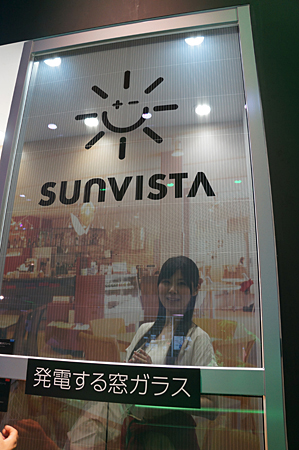 また、窓ガラスに設置して発電と採光を両立する「シースルー太陽電池モジュール」のデモンストレーションは、多くの来場者を集めている。