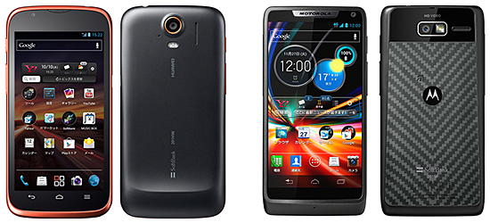 STREAM SoftBank 201HW(フレイムブラック)、RAZR M SoftBank 201M(ブラック)