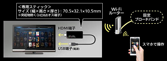 ソフトバンクモバイルは、専用スティックをテレビに接続し、新作映画などの映像作品や専門チャンネルなどが視聴できるサービス「SoftBank SmartTV(スマテレ)」の提供を、2012年12月上旬以降に開始する。