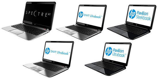 上段左から「HP Spectre XT 13-2100」「HP ENVY 4-1100」「HP Pavilion Sleekbook 14」、下段左から「HP ENVY 6-1100」「HP Pavilion Ultrabook 14」