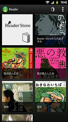 他社製のAndroid搭載スマートフォンやタブレット端末向けに、電子書籍アプリ「Reader for Android」を提供。ページめくりやコンテンツのグループソート、読んでいるページを対応機器間で同期する機能にも対応する。FacebookやTwitterで、友人と本の感想を手軽に共有することもできる。対応OSはAndroid 2.3以降。
