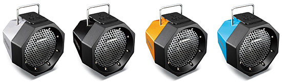 「PDX-B11」は、八角形のフロントグリルやキャリングハンドルを備えたユニークなデザインを採用。1.5kgと軽く、アウトドアやストリートで手軽に音楽を楽しめる。