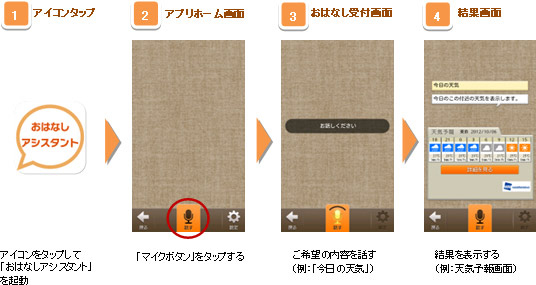KDDIと沖縄セルラーは、電話発信、メール作成、天気予報など、利用頻度の高い機能を音声で簡単に操作できるスマートフォン向けアプリ「おはなしアシスタント」の提供を11月1日に開始する。