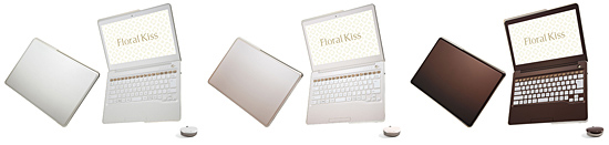 「Floral Kiss」は、富士通の女性社員が中心となって企画・開発したPCの新シリーズ。第一弾として、サイズ、デザインからアクセサリ、マウス、ACアダプタなどの周辺機器、アプリケーションに至るまで、エレガントさを追求したウルトラブック「CH55/J」を発売する。