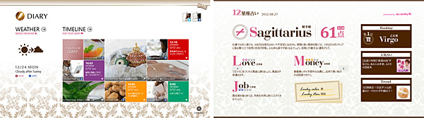 オリジナルアプリケーション「DIARY」「12星座占い by 占い@nifty」(右)の画面イメージ