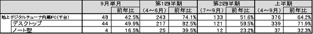 地上デジタルチューナー内蔵PCの出荷台数