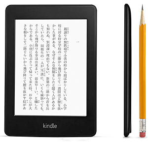 電子書籍リーダー「Kindle Paperwhite」は、目にやさしいEインクを採用した6インチのディスプレイを搭載。従来機に比べ、画素数が62%増え、コントラストが25%鮮明なディスプレイで、マンガの絵や文字をより美しく表示する。スクリーン全体を照らす独自技術の内蔵型フロントライトや、8週間持続する長時間バッテリを搭載。縦書き表示に最適化した日本語フォントは、8種類の文字サイズから選べる。