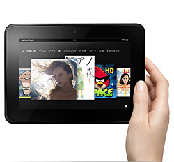 電子書籍だけではなく、インターネット(クラウド加速型ブラウザ「Amazon Silk」)やメール、ゲーム、アプリなども利用できる。10点マルチタッチに対応し、強力なプロセッサとグラフィックエンジン、最新のWi-Fi技術とBluetooth機能、16GB/32GBのストレージ、デュアルドライバ・ステレオスピーカー、ビデオ通話ができる前面HDカメラなども搭載する。サイズは193.0×137.0×10.3mmで、重さは395g。価格は、16GBモデルが1万5800円、32GBモデルが1万9800円。