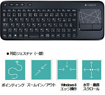 ロジクール、Windows 8のタッチインターフェースに対応するキーボードとマウス、タッチパッド