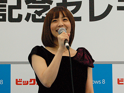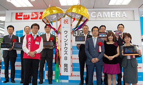 ビックカメラは、10月26日、ビックカメラ有楽町店で、日本マイクロソフトの樋口泰行社長とフリーアナウンサーの小林麻耶さんを招き、Windows 8発売記念セレモニーを開催した。