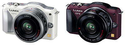 コンパクトデジカメでおなじみの「LUMIX」ブランドのパナソニック「LUMIX DMC-GF5」。カラーは4色(写真は、シェルホワイト、センシュアルブラウン)