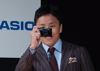 ロンドン五輪フェンシングで銀メダルを獲得した太田雄貴選手は、「EX-ZR1000」を片手に登場。「後輩の試合を撮ってあげたりすると、いつも手ブレで……」と動きの速いフェンシングの選手ならではの悩みを打ち明けた。「EX-ZR1000」は1秒間に30コマを撮影する高速連写機能を備える。「EX-ZR1000」の高速連写機能で、後輩がフェンシングをしているところ撮影してもらった。撮れた写真を目の当たりにして、太田選手は「ここまで突いているところが撮れるなんて」と驚いていた。