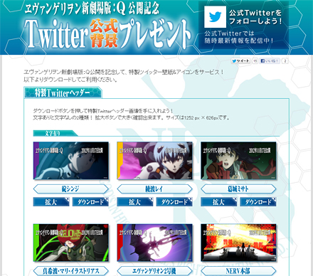 Twitter Japanは、今年11月17日公開予定の映画『ヱヴァンゲリヲン新劇場版:Q』のキャラクターなどをデザインした公式背景の無料プレゼントを開始した。