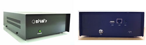 「ガラポンTV端末」は、最大7チャンネルの地上デジタル放送のワンセグ番組を、別売のUSB接続外付けHDDに24時間×60日間以上録画できる宅内設置用端末。容量2TBのHDDなら、7チャンネルを24時間、60日間分録画することができ、録画した番組はiPhone/iPadやAndroid搭載端末、PCで視聴できる。サイズは幅250×高さ70×奥行き200mmで、重さは約2kg。