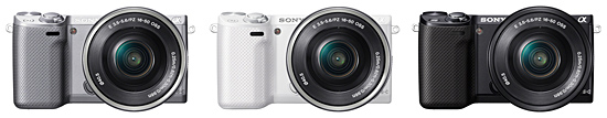NEX-5R パワーズームキット(左から、シルバー、ブラック、ホワイト)。同じカラーで、ダブルズームレンズキットもラインアップする