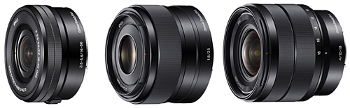 左から「SELP1650」「SEL1018」「SEL35F18」。いずれも手ブレ補正機能を備える
