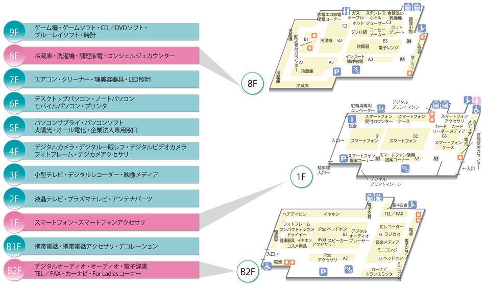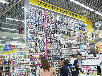 ヤマダ電機LABI新宿西口館では、平日に来店する会社員のリピーター確保に向け、スマートフォンアクセサリを充実させている。それも1階の一部分で天井まで陳列するほどの量を揃えた。村元店長は、「他社にはない圧倒的なボリュームの品揃えで、男女を問わず昼休みや会社帰りに立ち寄るという流れをつくることができた」としている。また、会社員の来店は、プリンタ用紙など、ビジネス消耗品の販売増にもつながっているという。