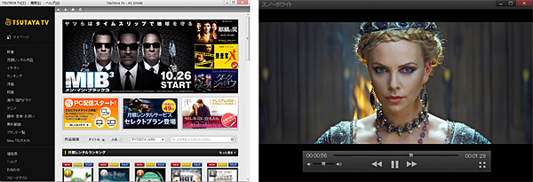 ハリウッドの新作映画や、海外のテレビドラマ、アニメ、バラエティなど、約3000作品からサービスを開始し、タイトル数は順次拡大していく。配信映像の再生には、「TSUTAYA TV」公式サイトで配布している専用のアプリケーションが必要。専用アプリケーションの対応OSは、Windows 7以降。