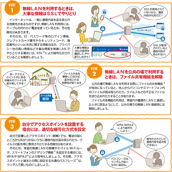 「無線LAN情報セキュリティ対策の3つの約束」を提示