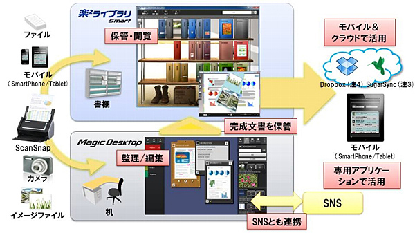 PFU、ファイリングソフト「楽2ライブラリSmart with Magic Desktop」、スマートデバイスやSNSとの連携に対応