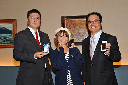 左から、丹羽 多聞アンドリウBS-TBS制作局事業部長統括プロデューサー、矢口真里さん、日立製作所情報・通信システム社の和田宏行通信ネットワーク事業部事業部長