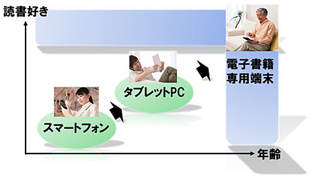 主なターゲットは、読書好きのシニア層や電子機器の操作が苦手な人。「いつでも、どこでも、だれにでも。読みたい本を読みやすく」というコンセプトを実現するために、端末だけで初期設定が完了し、クレジットカード情報を入力すればすぐに電子書籍を購入できるようにするなど、端末や販売方法を工夫した。タッチパネルだけでなく、「本棚」「書店」「メニュー」「戻る」など、日本語で表記したハードウェアボタンでも操作でき、紙のガイドブックも付属する。