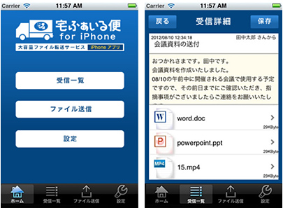 エルネット、大容量ファイル転送サービス「宅ふぁいる便」のiPhone用アプリ