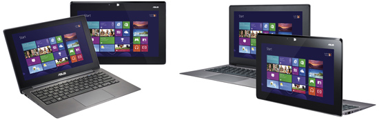 「ASUS TAICHI」は、最薄部3mmのスリムボディに、11.6型ワイドの二つのフルHD液晶ディスプレイを搭載し、指1本でノートPCにもタブレット端末になる世界初のウルトラブック。ウルトラブックの高い性能と、手軽に使えるタブレット端末を融合した。