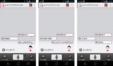 「しゃべってコンシェル」は、音声エージェント機能をもつAndroidアプリ。スマートフォンに話しかけるだけで情報を調べて教えてくれたり、携帯電話の操作をしてくれたりする。2012冬モデルのスマートフォン・タブレット端末の発売に合わせて、自分の好きなキャラクターに変更できる「しゃべってキャラ」や検索対象の拡大などの機能を追加。12月以降、順次、2012秋モデル以前のAndroid 4.0以上のスマートフォンに対応する。