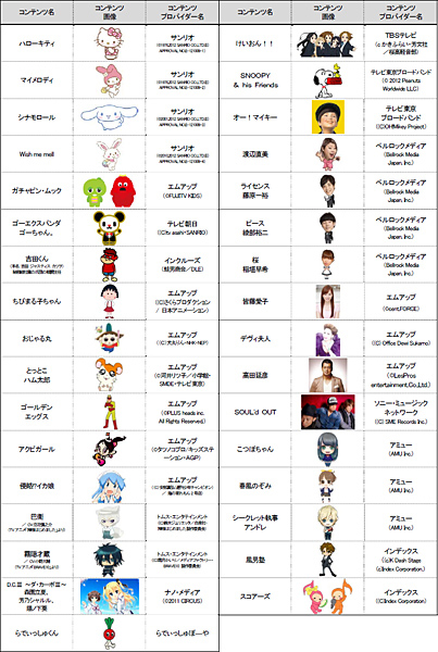 コンテンツプロバイダが提供する「しゃべってキャラ」一覧