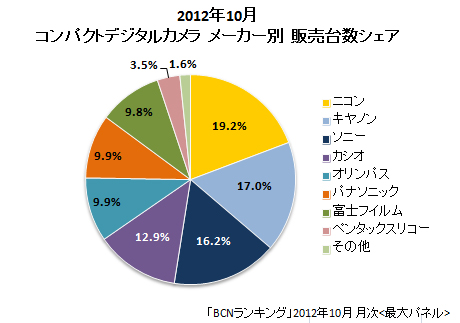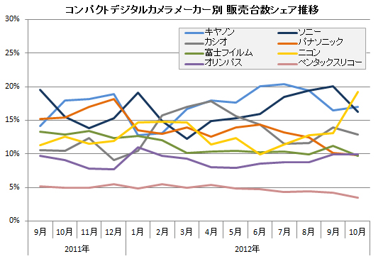 ニコンがコンパクトカメラの月間メーカー別シェア1位に浮上、過去3年間で初
