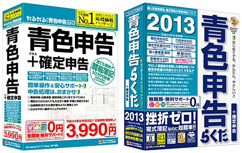 「かるがるできる青色申告2013」(左)と「青色申告らくだ2013」