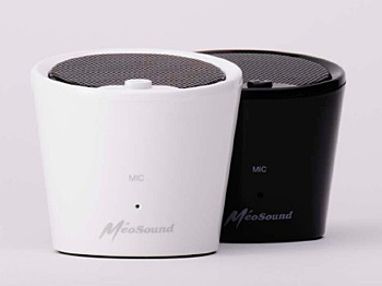 Bluetoothを使ってタブレット端末やスマートフォンとワイヤレス接続ができるポータブルスピーカー。iOSの音声アシスタント・コントロール機能、Siriに対応し、「MeoSound SR」のボタンをプッシュするだけで、iOS端末側のSiri機能を呼び出すことができる。「MeoSound SR」のマイクとスピーカーを使って、音声コントロールやSiriとの会話が楽しめ、ハンズフリー通話もできる。
