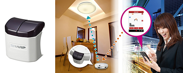 スマートフォンからの指示は、インターネット上から「COCOROBOネットワーク」を介し、自宅の無線LANを通して「COCOROBO」に伝わる。「COCOROBO」と接続した「RX-CU1」は、赤外線通信で他の家電へ指示を送る仕組みだ。サービス開始の12月13日時点での対応製品は、赤外線リモコンで操作ができるシャープ製のテレビ、LED照明、スリムイオンファン、エアコン(20005年以降発売のモデル)に限られているが、今後対応製品を増やす予定だ。