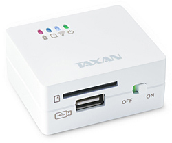 加賀ハイテックは、ポータブルワイヤレスストレージ「TAXAN MeoBank」の第ニ弾として、Wi-Fiカードリーダー「MeoBankSD」を11月26日に発売する。価格はオープンで、実勢価格は5980円前後の見込み。