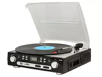 ターンテーブルとカセットプレーヤーを備え、レコードやカセットテープの音源をPCを使わずにMP3形式に変換し、USBメモリやSDカードに保存できる。