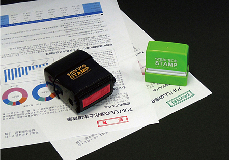 データで保存する書類に、「重要」「回覧」などのスタンプを押してスキャナなどでデータ化し、付属の専用ソフトを起動したPC上で書類データを読み込むと、印面ごとの分類フォルダに自動仕分けして保存する。対応OSは、Windows 8/7/Vista/XP。